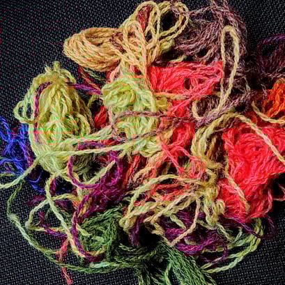 Von diversen Web- und Strickprojekten sind allerhand Reste von Shetland-Wolle übrig geblieben.